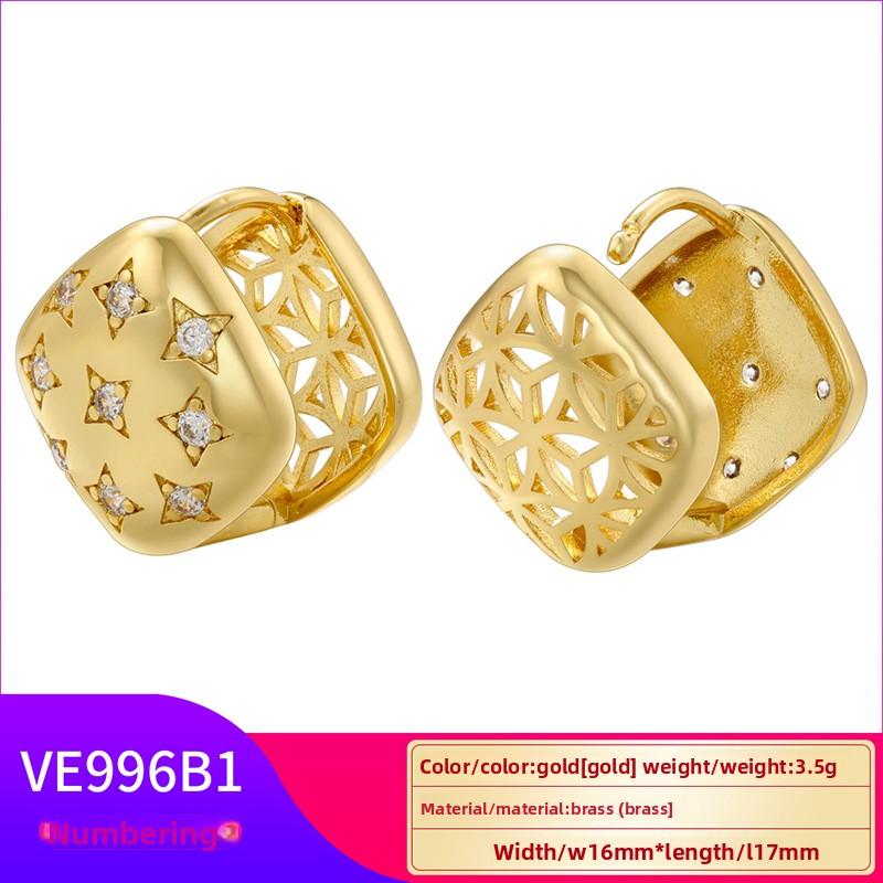 Chic 3D Square Star Hollow Earrings 18K Gold Plated Zircon Stud Earrings for Women Modern Jewelry Gifts