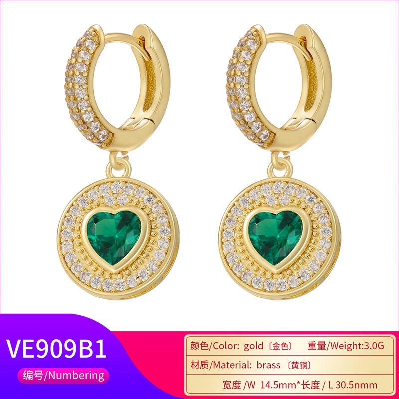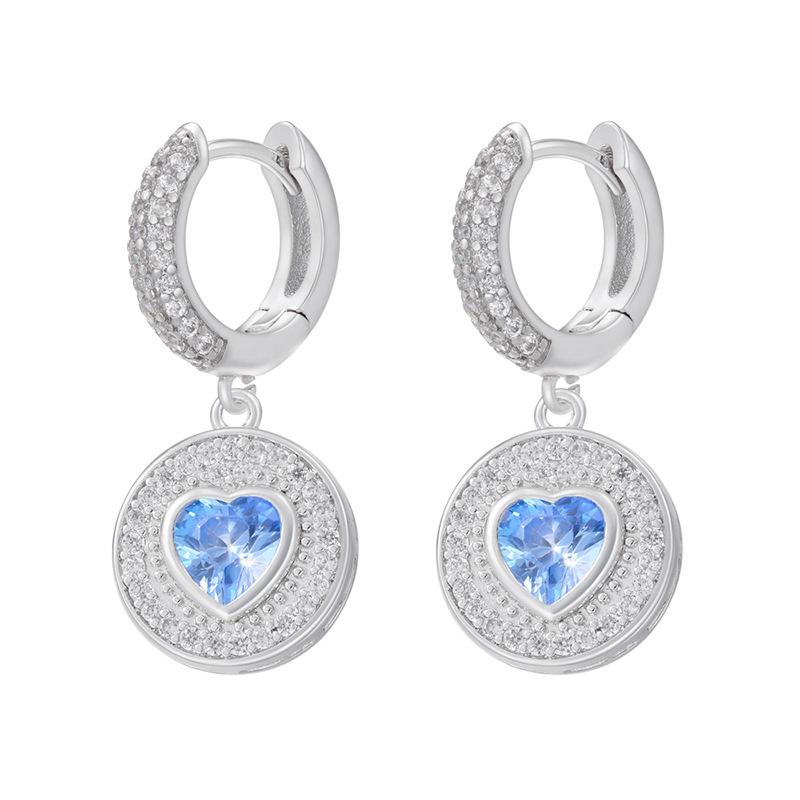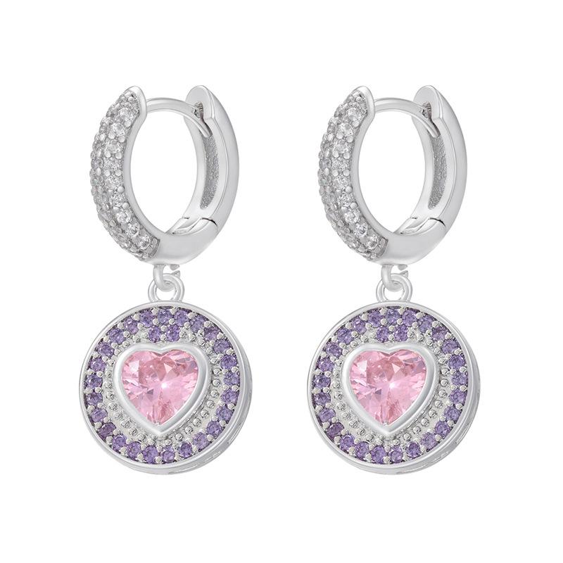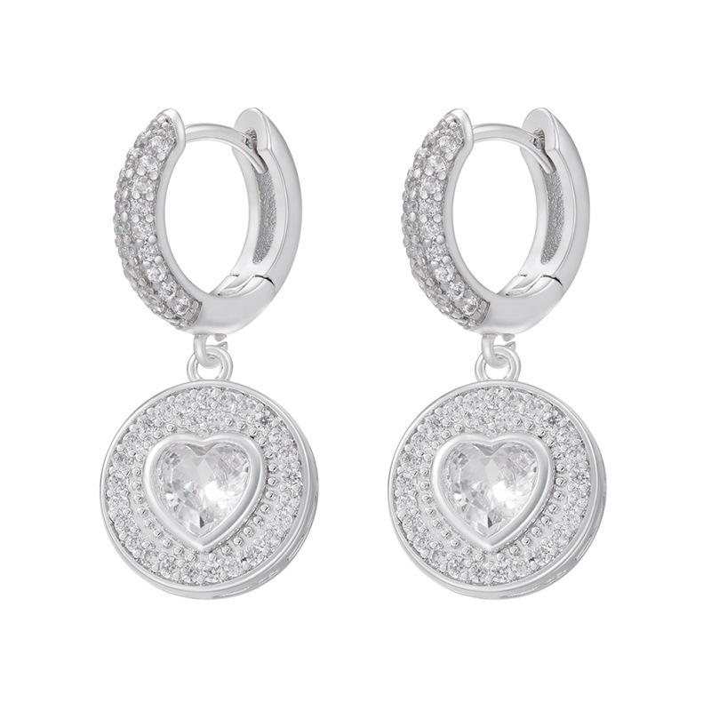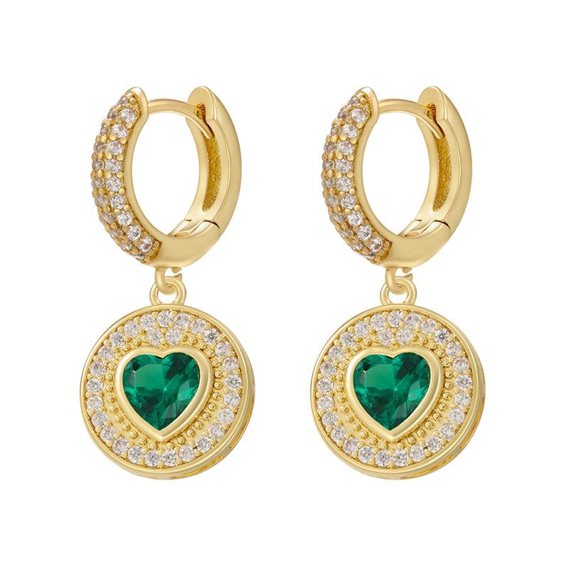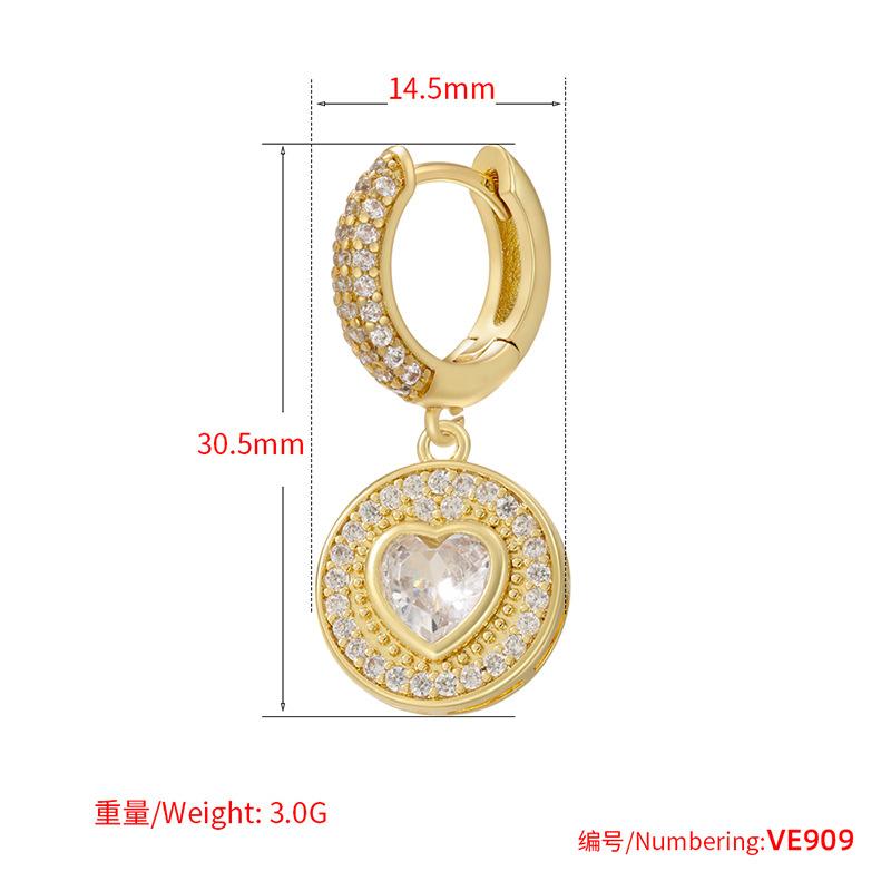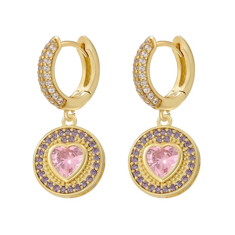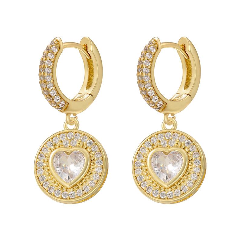 Elegant Flat Round Heart Earrings Gold Plated with Sparkling Gemstones Unique Love Shape Perfect Gift for Her