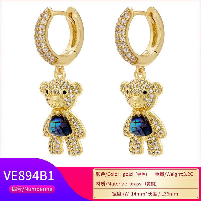 Sweet Heart-Shaped Lovely Three-dimensional Bear Doll Earrings